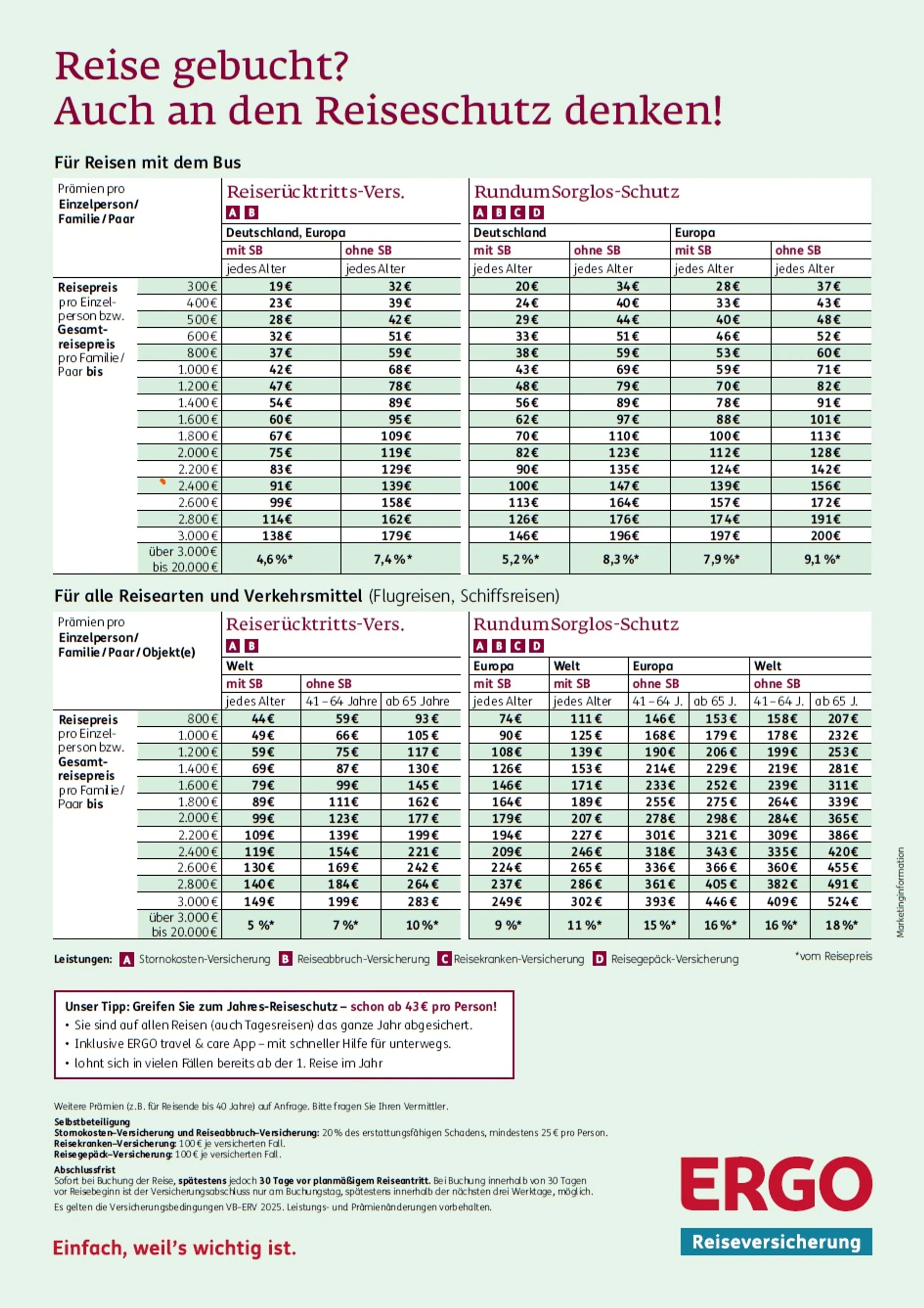 Hier können Sie über unseren Partner ERGOReiseversicherung Ihren Reiseschutz buchen